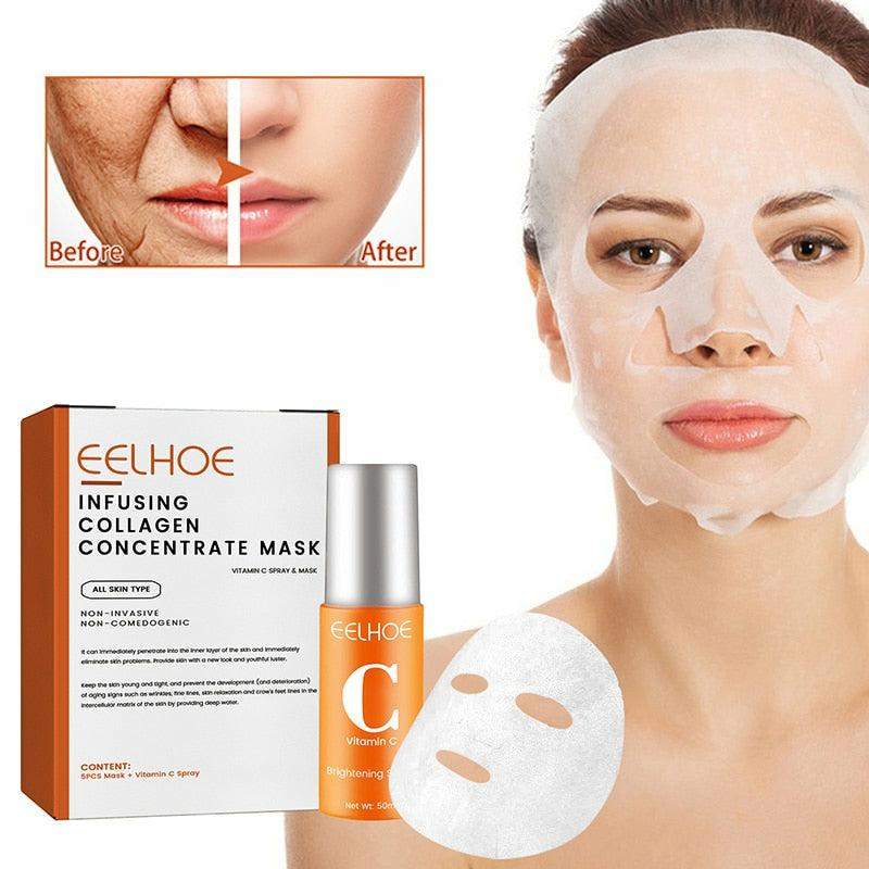 Main Ingredients: Sodium Hyaluronate+Vatamin C spray, Collagen facial mask